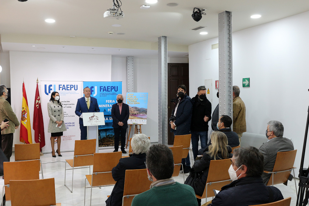 XXIIII Feria de Minerales y Fósiles Imágenes de Pedro A. López Presentación de la XXIV Feria de Minerales y Fósiles de la Unión en el Palacio de Aguirre de Cartagena, con la participación del presidente de la Federación de Empresarios y Profesionales de La Unión (Faepu) y del Comité Organizador de la Feria de Minerales y Fósiles de La Unión, Carlos Bernabé y la de María del Valle Miguélez, Consejera de Empresa, Empleo, Universidades y Portavocía de la Comunidad Autónoma de la Región de Murcia |