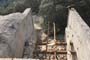 Mientras paseamos y tomo fotografías comprobamos que la explotación constaba, y consta, de tres niveles de galerías que, fácilmente, se advierten por la propia disposición de sus bocaminas, una gran zanja que se extiende a lo largo de la ladera con numerosas escombreras y restos de instalaciones entre las que se encuentra una pequeña casa derruida frente a la galería del nivel inferior y lo que parece ser una tolva o cargadero del mineral.