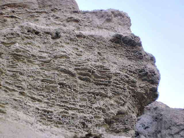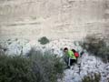 Las lluvias caidas en la última semana dejan aflorar algunas rosas de yeso, en ocasiones de tamaño muy respetable. Escondidos entre el tremendo barrizal de la rambla aparecen también ópalos y Xilópalos donde la fibra vegetal ha sido sustituida por sílice. Dependiendo del sitio, hay vetas en las que tiene un precioso color azulado. Después de recoger algunas muestras de yeso, y cuando ya la actividad del campo de tiro se hace frenética, nos dirigimos hacia la cabecera del embalse de Santomera, en realidad un arrecife coralino del Mioceno Superior, donde almorzamos y damos una vuelta hasta coronar el vértice geodésico. Son numerosas las muestras de coral y pequeños gasterópodos que aparecen sueltos y rodados en las escombreras que se han dejado tras cortar la montaña para hacer caminos privados que separan las fincas particulares de cítricos..