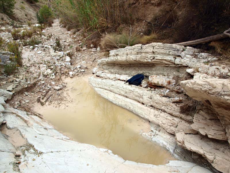 El Ventos Agost. Alicante Aunque el día presagia lluvia decidimos hacer una visita rápida, sobre todo por la cercanía del lugar, a la zona del Ventos en Agost donde hace unas semanas fuimos. Esta vez vamos a propósito a visitar los tres lugares conocidos en una rambla donde aflora un estrato de unos 25 cm de grosor que descansa sobre otro de entre 2 y 4 cm de material muy limonitizado. Este estrato en la parte opuesta a la zona de contacto con el limonitizado tiene numerosas incrustaciones de nódulos de marcasita con formas muy caprichosas, algunos de varios centímetros de diámetro. Aunque la roca donde se encuentran estos nódulos es una Cliza veteada, encontrándose los nódulos en las betas más oscuras, es durísima logramos extraer numerosas muestras que nos servirán para nutrir nuestras colecciones y poder regalar a los compañeros que no han acudido a esta salida. Tras un par de horas de agotadora picada a eso de las 12 de la mañana para casa a ver lo cogido. |