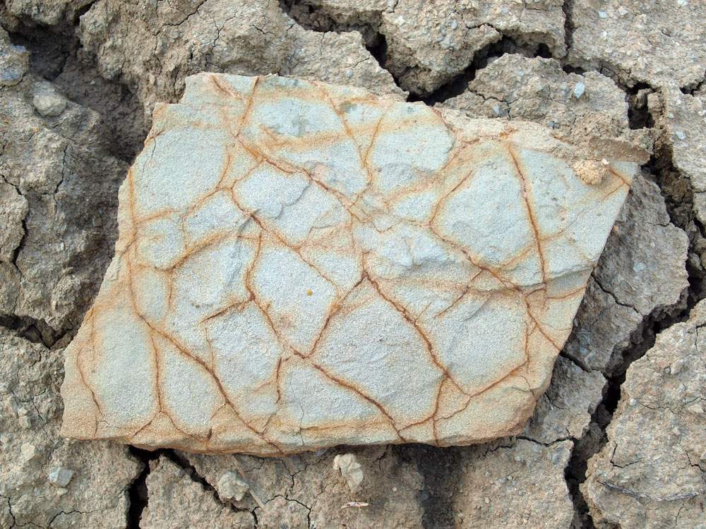 El verde debe indicar la presencia de glauconita. Los amarillentos comportan presencia de algún óxido de hierro, visible en las bancadas de calizas blanquecinas duras de fractura concoide. El pardo quizás se origine por la mezcla de ambas, o por la alteración de la glauconita.