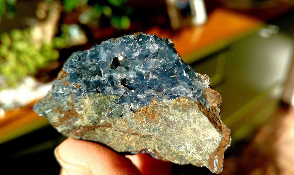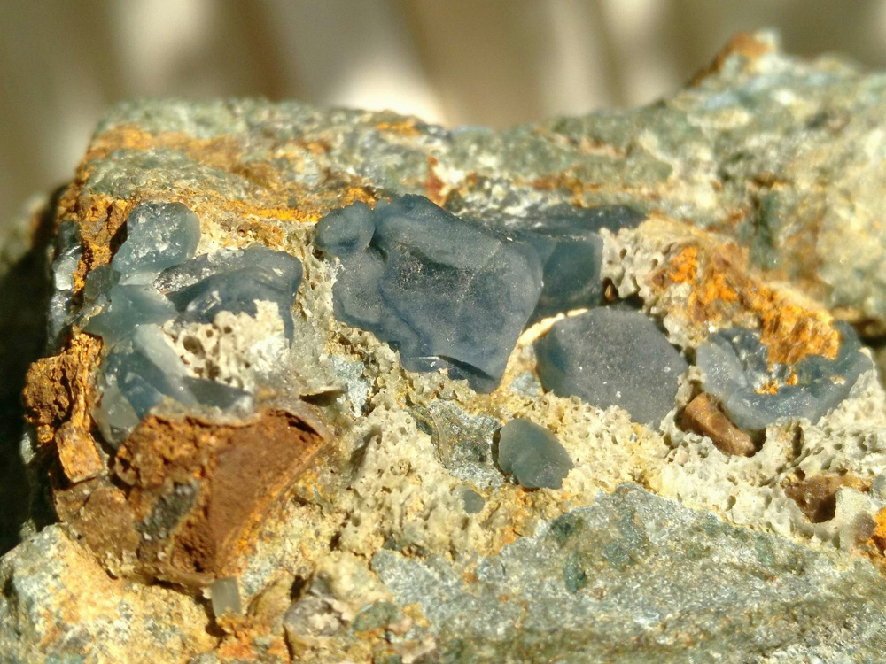 El objetivo de la visita son los cuarzos azules que de forma masiva, son más abundantes que en otros afloramientos similares, la ofita es más porosa, ligera y algo más fácil de romper que en los serranos.