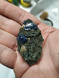 También se pueden encontrar piezas con hematites, y aerinita, muy arenosa de color azul mate, entre las vetas de cuarzo de las ofitas.