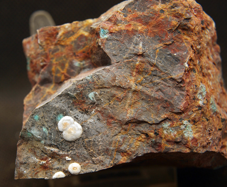 En este contexto, se ha desarrollado una importante paragénesis mineralógica. Así, se han ido encontrando numerosas especies minerales presentes en el yacimiento y en las escombreras, pero siempre muy poco abundantes. |
