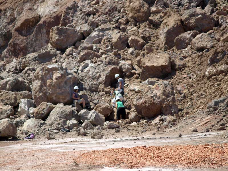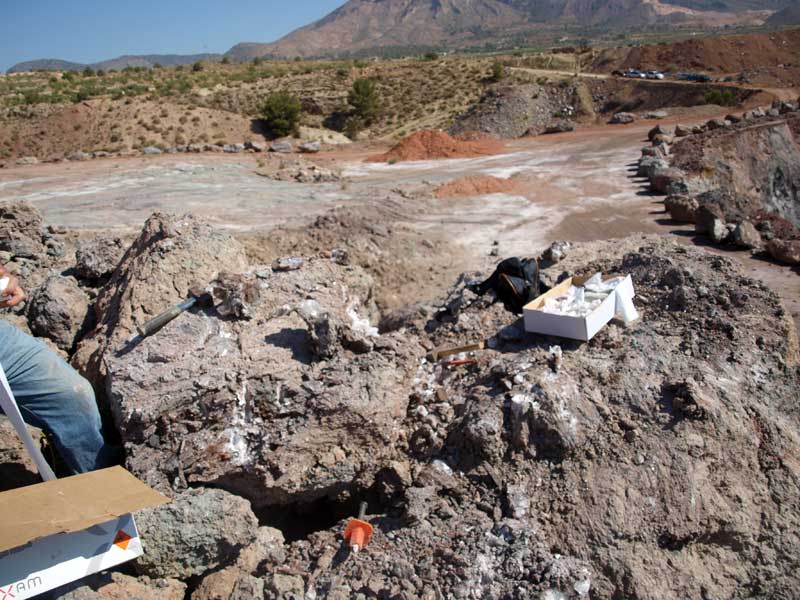 Explotaciones de arcilla en Macisvenda. Murcia Aprovechando la visita del Grupo Mineralogista de Madrid (http://www.gmmadrid.com) a la zona de Macisvenda en Murcia y la zona de Hondón de los Frailes en Alicante, algunos miembros del GMA decidimos acompañarlos durante la mañana del la jornada del sábado 23. Aunque por estas fechas ya el calor se hacer verdaderamente insoportable pasamos una muy agradable mañana en compañía de aficionados a este mundillo y encima tenemos la suerte de localizar alguna que otra pieza de los yesos que salen en la explotación. Y a eso del medio día y tras una bebidas frías en el restaurante de Hondón de los Fariles nos marchamos para nuestros domicilios aunque los miembros del GMM acabaran la jornada por la tarde buscando mas minerales por la zona de la Sierra de Albatera. |