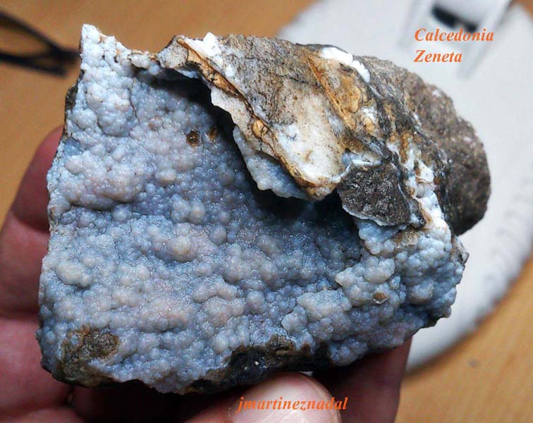 Este Sábado día 27 de abril, pese a las lluvias caidas a la primera hora de la mañana, he decidido hacer una salida de media jornada al Cabezo Negro. Cuando llueve, es mas facil encontrar piezas de interés entre las montañas de escombro que aun se pueden ver en el lugar. En esta ocasión, he decidido subir hacia mitad de la montaña, donde incrustadas en la roca se encuentran geodas de una calcedonia azul muy interesante. En las multiples escombreras se pueden coger muestras. En ocasiones la calcedonia viene recubierta de una fina capa de ópalo que le da un brillo y una calidad muy especial. tras el descenso me quedo un rato por la zona de trabajo a pie de montaña donde consigo tambien dos ópalos de un tamaño respetable. Como el cielo vuelve a amenazar lluvia, y es muy posible que me quede atrapado con el coche, a eso de la una de la tarde regreso para casa.