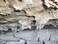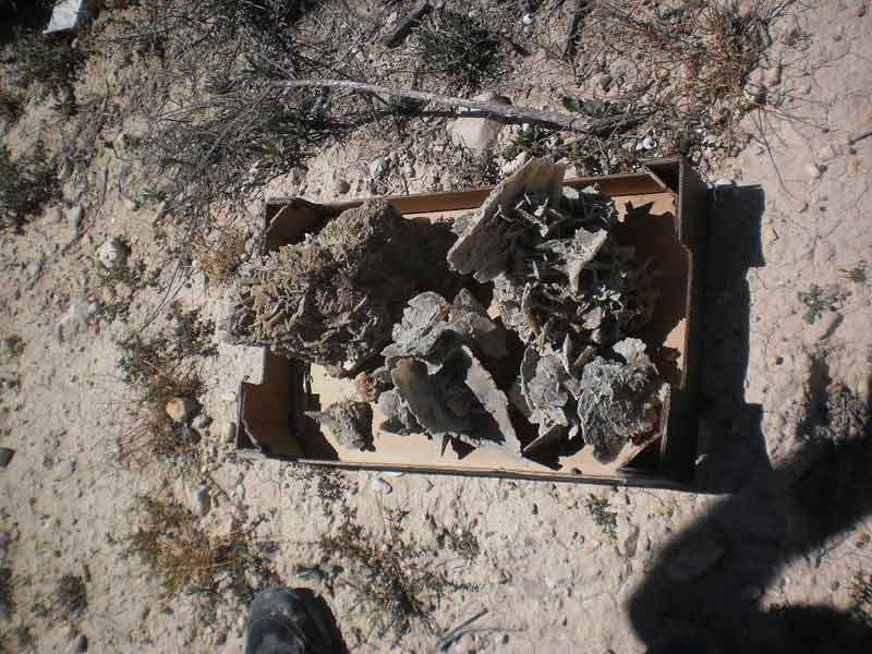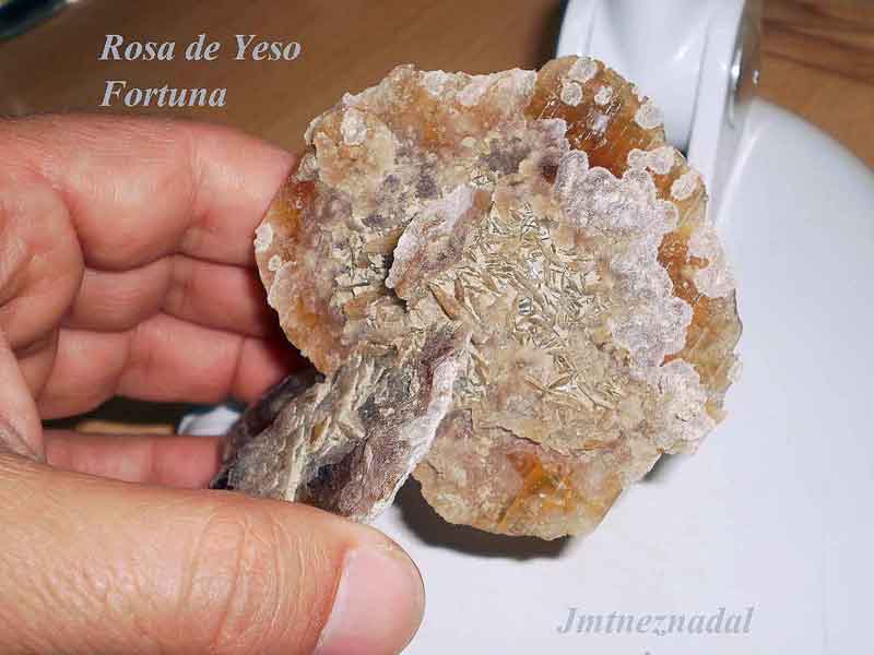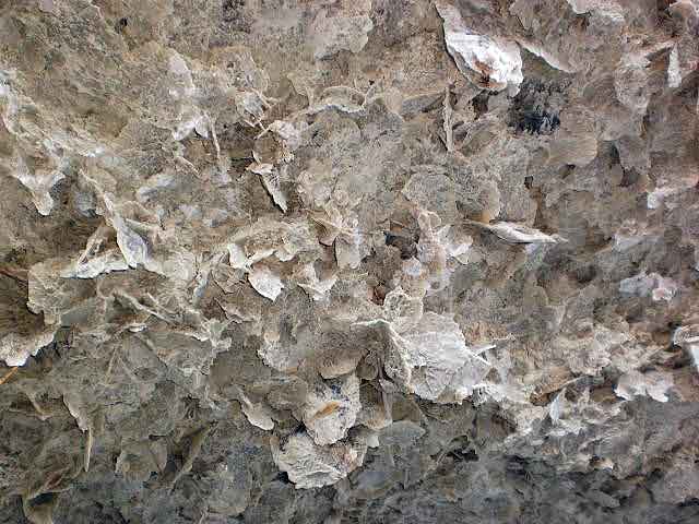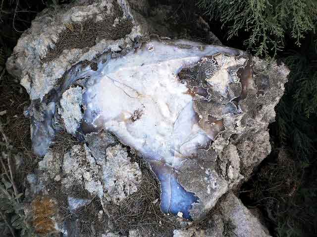 Las lluvias caidas en la última semana dejan aflorar algunas rosas de yeso, en ocasiones de tamaño muy respetable. Escondidos entre el tremendo barrizal de la rambla aparecen también ópalos y Xilópalos donde la fibra vegetal ha sido sustituida por sílice. Dependiendo del sitio, hay vetas en las que tiene un precioso color azulado. Después de recoger algunas muestras de yeso, y cuando ya la actividad del campo de tiro se hace frenética, nos dirigimos hacia la cabecera del embalse de Santomera, en realidad un arrecife coralino del Mioceno Superior, donde almorzamos y damos una vuelta hasta coronar el vértice geodésico. Son numerosas las muestras de coral y pequeños gasterópodos que aparecen sueltos y rodados en las escombreras que se han dejado tras cortar la montaña para hacer caminos privados que separan las fincas particulares de cítricos..