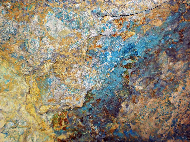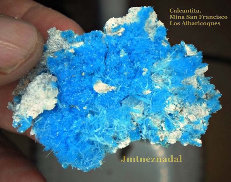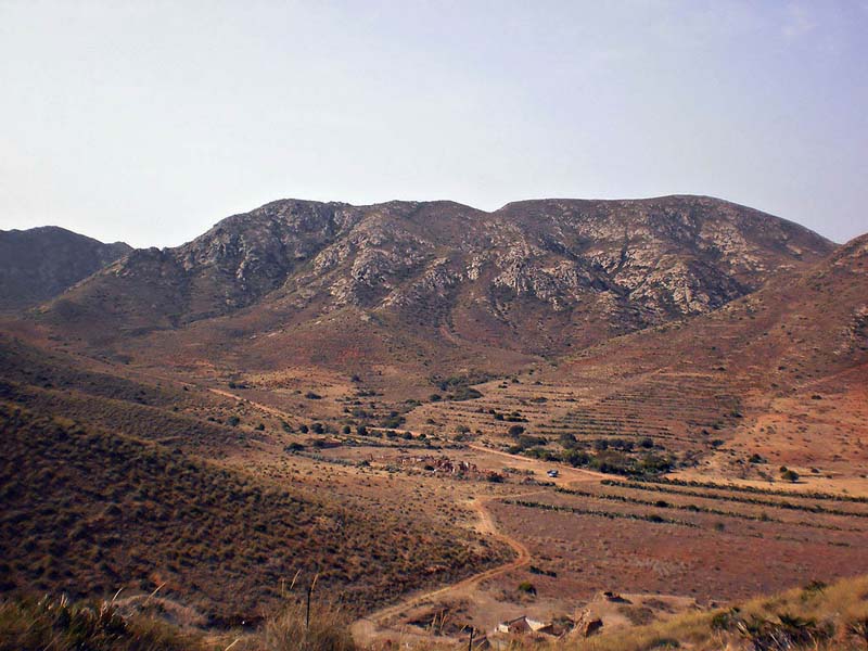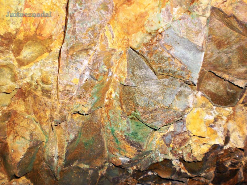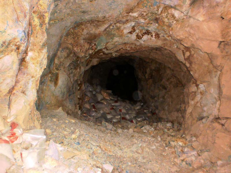 Zona Minera de Rodalquilar Minas San Francisco y María Josefa La concesión Minera de San Francisco, en el paraje de Los Albaricoques, en Nijar, Almería, mantiene aun una mina en la que pueden verse paredes tapizadas de Calcantita o azul de vitriolo, Se trata de un tunel no muy extenso con una direcci´pon principal y varios ramales que se cortan rapidamente, donde existe un fuerte olor a azufre, que hace que pasada una media hora de estancia en la mina se produzca picor en la garganta y en la lengua. Esta es la primera de las minas que visitamos el pasado día 30 de Junio acompañados en todo momento por Jose Francisco Castro, compañero de Adra, Almería, que gustosamente nos va guiando por varias concesiones. Después de tomar unas muestras de calcantita de las muchas que hay entre el escombro del suelo, y tras una curiosa anecdota con un murcielago que hacía chasquear los dientes en tono de amenaza produciendo un ruido que no podiamos localizar hasta dar con el animal, nos dirigimos a la Mina Maria Josefa, enclavada en plena sierra de Rodalquilar y a un altura muy considerable. La Mina Maria Josefa era una de las muchas de las que hasta 1936 se extraía el oro. La mina Maria Josefa es muy visitada por los aficionados a los micros existiendo en sus paredes multitud de variedades de microcristalizaciones. Resulta sorprendente la construcción en tres pisos perfectamente diferenciados y apuntalados con grandes troncos de madera. Tras visitar las tres plantas y tomar algunas muestras, y fotografiar un pollo de rapaz que se encuentra en las inmediaciones de la bocamina, seguimos la ruta hacia Rodalquilar, pasando por el lavadero, y por el poblado de San Diego. Apenas cuatro casas que hasta el comienzo de la guerra explotaban varias minas de la zona.