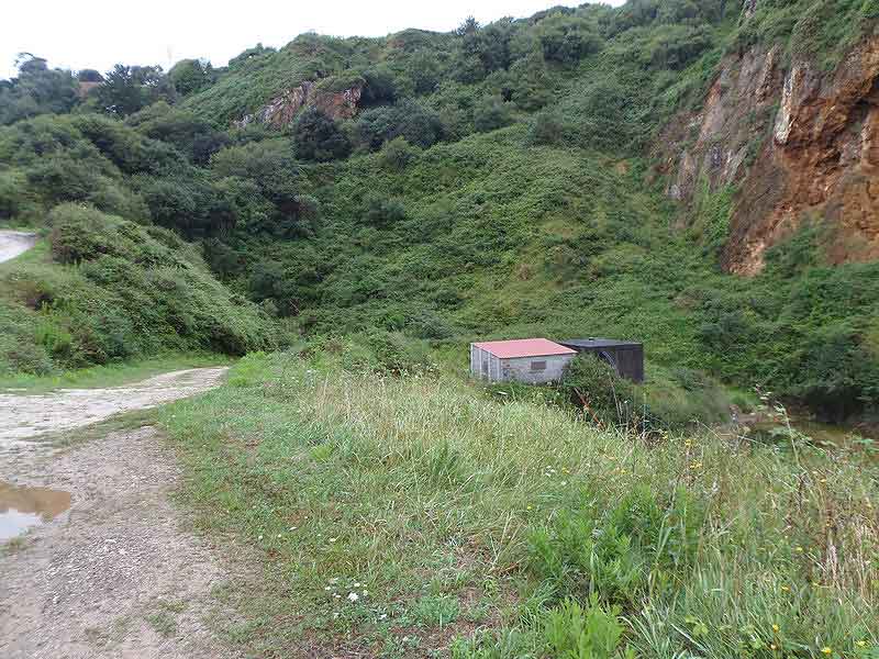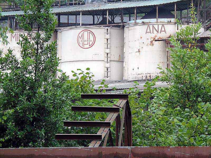 Por fin en el pueblo, pocas casas, mucha vegetación y una humedad horrible aunque agradable en Agosto, atravesé el pueblo, y observe un camión que delante de mi giraba a la derecha,,,hacia mina Ana, aparque mi coche y me acerque a las instalaciones,, el ruido delataba la actividad de la mina,, vi a un trabajador de ella y estuvimos conversando un rato, me dijo que trabajaban lógicamente el espato de fluor, pero me frustro el que no conociera la paredona o la llamada cantera de los cobayos o el gueto.