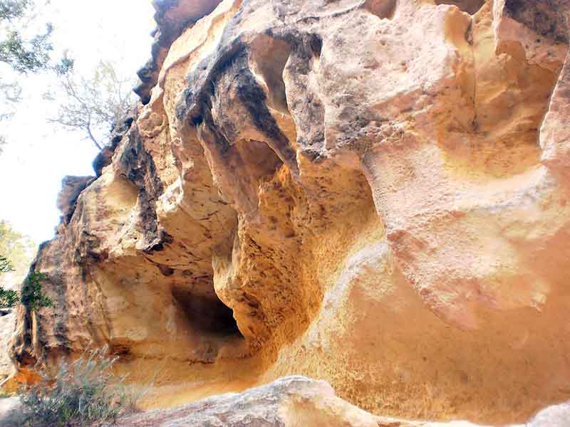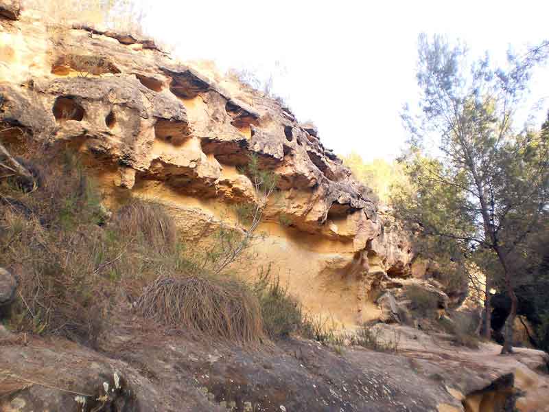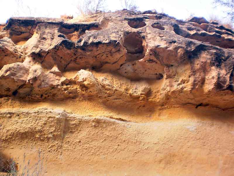 El viernes día 23 de Agosto decido hacer una salida de tarde hacia la zona de Rio Seco, sumergiendome en el antiguo lecho marino por la ruta señalada y durante aproximadamente dos kilometros y medio, entre caprichosas y endiabladas formas de la roca, pulida y erosionada a placer por el efecto del antiguo mar y del viento. Todas las paredes presentan numerosos restos fósiles fuertemente meteorizados y desgastados, convertidos practicamente en arenisca. Hay diversos bibalvos, pequeños restos de coral, balanus, y facies sedimentarias o icnofacies, esto es, grutas excavadas por pequeños crustaceos dentro de las cuales se ha ido produciendo progresiva sedimentación de materias orgánicas o no, formando en ocasiones intricadas galerías que destacan sobre la arenisca.