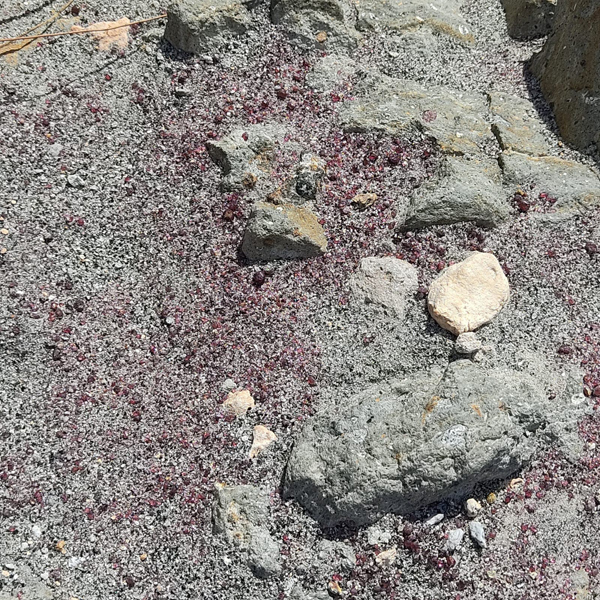 El cerro del Hoyazo, también conocido como Volcán de la Granatilla o el Hoyazo de Níjar es un estratovolcán situado en la sierra Alhamilla, en el sur de la provincia de Almería (España) y a unos 3 km al este de la ciudad de Níjar. Su origen se encuentra en el Messiniense, hace unos 6,2 millones de años El Hoyazo de Níjar es un antiguo edificio volcánico submarino (tipo atolón) donde la erosión ha liberado los granates, concentrándolos en el suelo del cráter. Esta paragenesis refleja un entorno de origen magmático-metamórfico (anatexia) con una interacción rápida entre el magma y las paredes de la cámara magmática. La paragénesis del Hoyazo de Níjar (Almería) se caracteriza por la presencia de minerales metamórficos de alta temperatura englobados en dacitas volcánicas, siendo el almandino (granate) el más abundante. Esta asociación mineral, formada por la fusión de rocas corticales, incluye principalmente granate (almandino), cordierita, biotita, sillimanita y a veces cuarzo. |