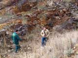 Aún con la semana de intenso frió que ha hecho algunos compañeros efectúan una salida a Cehegin, Murcia, Primeramente se visita la Mina Edición situada a muy poca distancia del núcleo, explotación subterránea de magnetita. Se pueden localizar muchísimas muestras de mineral. Aunque esta situada muy cerca del pueblo hacemos constar que no hay ningún tipo de señalización o protección del pozo de extracción principal con su consiguiente peligro para cualquier persona que se pueda acercar a la mina. Después nos encaminamos a la Jabalina, pédanla de Cehegin a un pequeño afloramiento de calizas ricas en hierro y en el que abundan cristales de cuarzo morión aunque nos encontramos con que parte del yacimiento ha sido enterrado por la construcción de una carretera. Tras una estupenda comida en la pedanía de Canara nos encaminamos a visitar las antiguas instalaciones de la Mina Carlota. Al igual que la primera mina visitada, esta es también subterránea y de mineral magnetita. Una curiosidad, esta, situada bastante más lejos del núcleo urbano, pero aquí si están delimitados y protegidos los dos pozos de extracción existentes. Ninguna muestra de especial atención pero merece la pena la visita por ver los restos de las antiguas inhalaciones mineras. Para acabar el día y ya de regreso a Alicante nuestro compañero Andrés nos enseño su fantástica colección de minerales en Elche. |