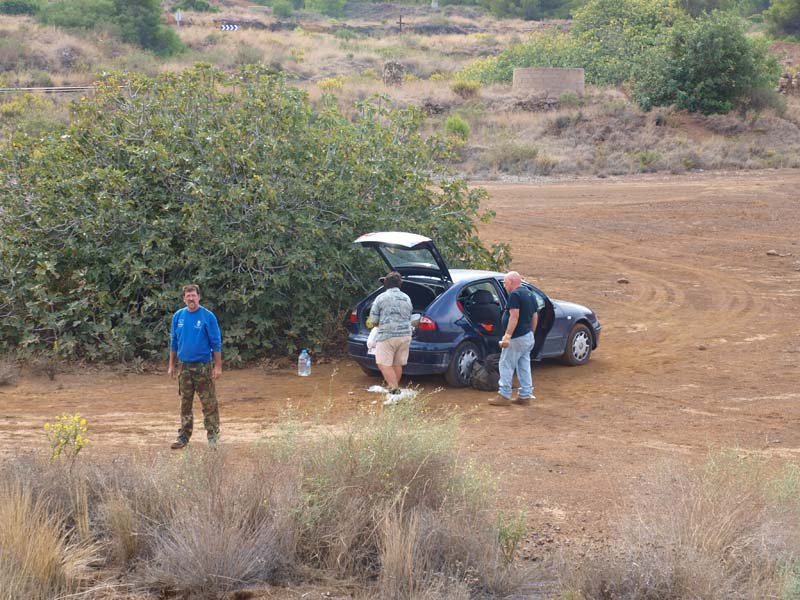 Tras tomar el preceptivo café en nuestro lugar de costumbre nos encaminamos a la zona de los Pajaritos a seguir explorando minados de la misma como ya hemos hecho en varias ocasiones anteriores logrando algunos buenos ejemplares de cuarzos algunos de color verdoso y algunos ejemplares de baritina metamorfoseada en cuarzo de color verdoso. Tras visitar algunas instalaciones mineras y apreciar, como ya es común en la zona, el total abandono y deterioro de las misma tomamos una estupenda paella en la cafeteria El Estrecho en el pueblo del mimo nombre para encaminarnos hacia el minado llamado por los lugareños Cueva Negra. Aquí y tras apreciar que la entrada esta muy peligrosa, pues como se aprecia en alguna de las fotos que acompañan, la parte superior de la misma esta bastante agrietada y en un estado que parece que se vaya a hundir en cualquier momento decidimos hacer una pequeña visita a la mina Marquesita Moderna donde localizamos alguna muestra de baritina y calcita. A eso de las 6 de la tarde rotos pero contentos para casa. |