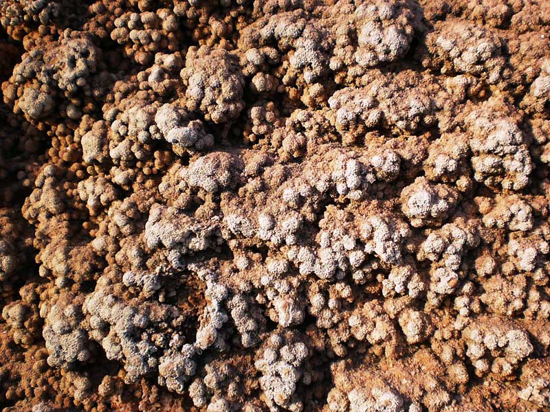 El material que se puede encontrar es Aragonito y Calcitas. Por regla general está todo muy quemado, pero aun aparecen algunas calcitas diente de perro muy interesantes. El lugar es peligroso y hay que picar con mucho cuidado pues las voladuras dejaron la montaña en condiciones muy precarias con grandes bloques en equilibrio y continuos derrumbes. Como ocurre desgraciadamente con estos sitios, la acumulación de basura y escombros procedentes de obra son también abundantes. Aprovecho el Sol de primera hora de la tarde para tomar fotografías en macro de las placas de aragonito y calcita que tapizan algunas zonas de las cortas.