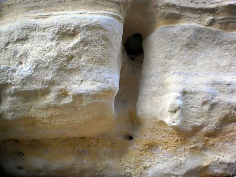 El viernes día 23 de Agosto decido hacer una salida de tarde hacia la zona de Rio Seco, sumergiendome en el antiguo lecho marino por la ruta señalada y durante aproximadamente dos kilometros y medio, entre caprichosas y endiabladas formas de la roca, pulida y erosionada a placer por el efecto del antiguo mar y del viento. Todas las paredes presentan numerosos restos fósiles fuertemente meteorizados y desgastados, convertidos practicamente en arenisca. Hay diversos bibalvos, pequeños restos de coral, balanus, y facies sedimentarias o icnofacies, esto es, grutas excavadas por pequeños crustaceos dentro de las cuales se ha ido produciendo progresiva sedimentación de materias orgánicas o no, formando en ocasiones intricadas galerías que destacan sobre la arenisca.
