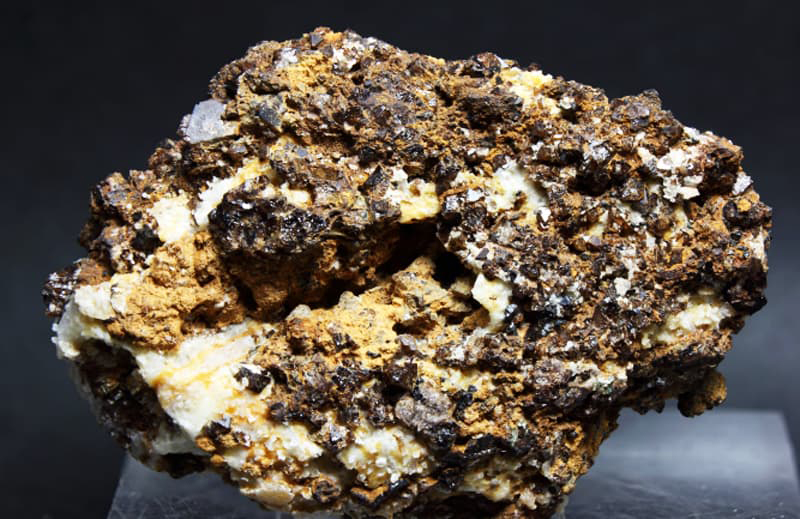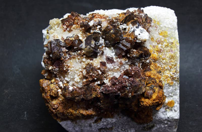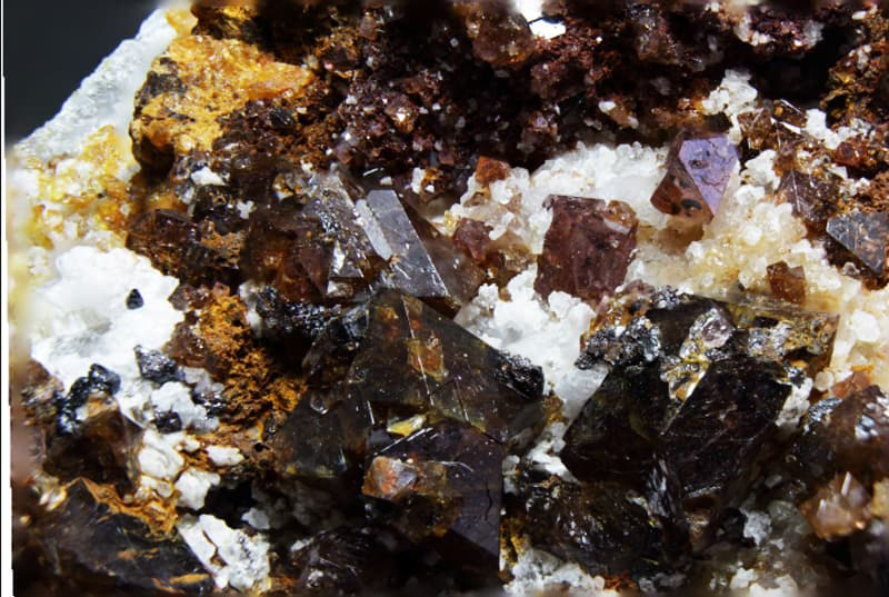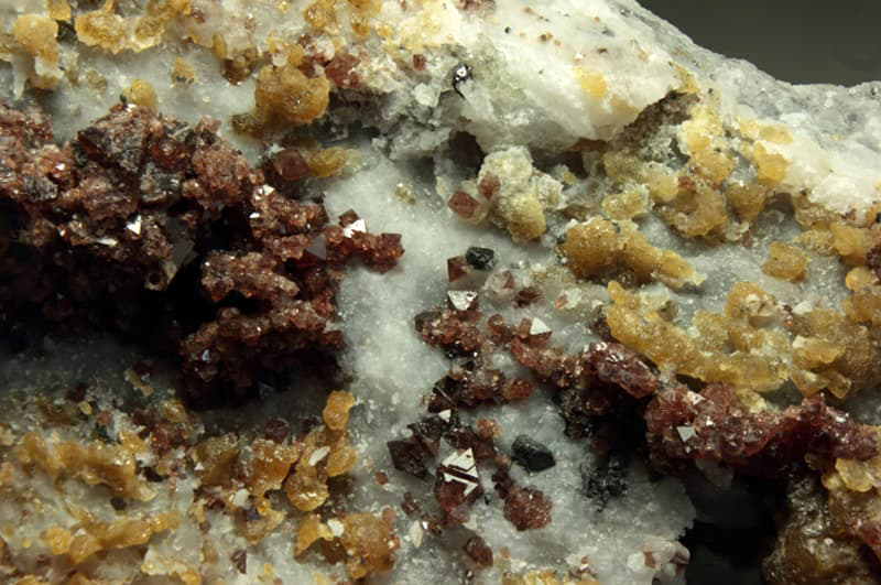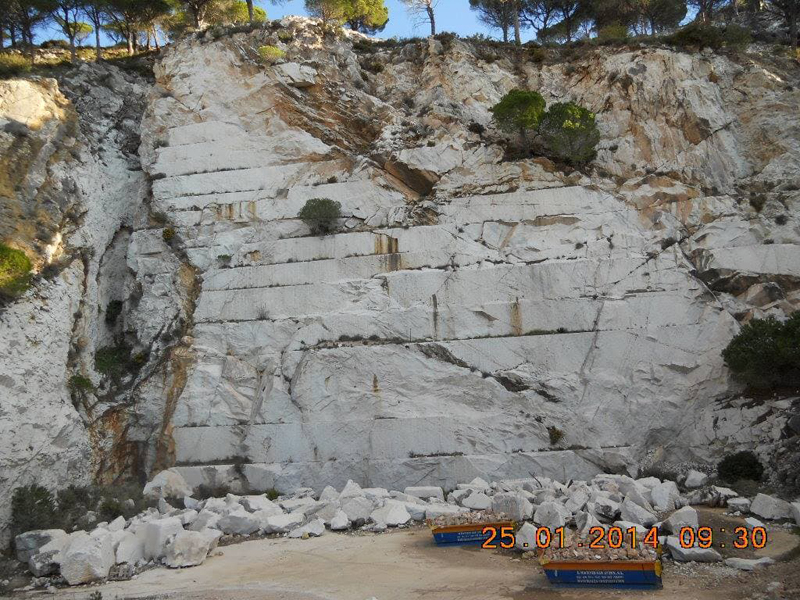 Cantera de mármol antigua, desde tiempos romanos, donde se extrajeron en los años 70 mucho material de construcción. Se encuentra sobre Mijas pueblo, en una ladera de la Sierra. Paisaje de pinos sobre mármoles y dolomías donde se pueden buscar minerales como las espinelas rosas, marrones y rojas en las calcitas masivas y dolomías de la zona. Clinohumitas, forsterias, aragonito entre otros minerales. Imágenes de Peter Minerales |